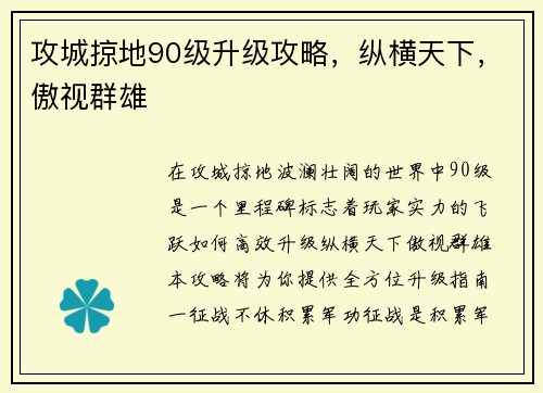 对于手游龙之谷中的剑圣职业,加点方案至关重要,因为它决定了剑圣在战斗中的效率和生存能力。本文将深入解析龙之谷剑圣的加点图,为玩家提供最优选择。 属性加点 力量(STR):剑圣的主要输出属性,增加物理伤...